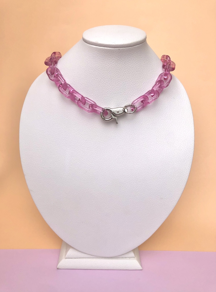 Ese collar de acrílico corto es ideal para quienes buscan un oque únic y moderno. El largo de su cuello es de 46,5 cm que queda a la base del cuello, perfeco para elevar cualquier look con estilo.