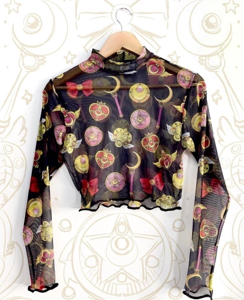 Remera crop con cuellito y manga larga.